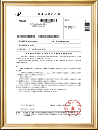實(shí)用新型專利證書(一種甲醛清除劑的原料存儲